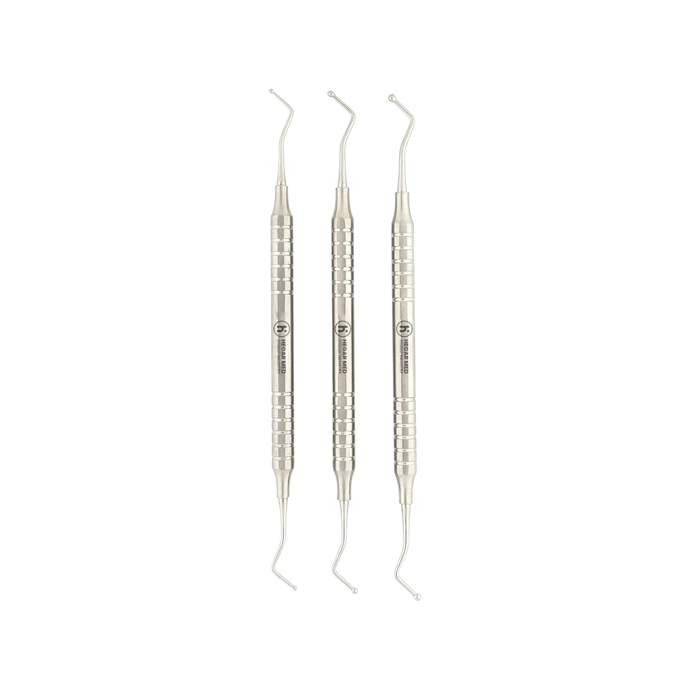 Complete your restorative dental toolkit with the Set of Ball Pluggers with Light Handle – Sizes S, M, L, expertly crafted by Hegar Med Industry. This premium 3-piece set includes ball tips in 1 mm, 2 mm, and 3 mm diameters, providing maximum versatility for a wide range of dental procedures—from precise cavity work to broader filling applications.
